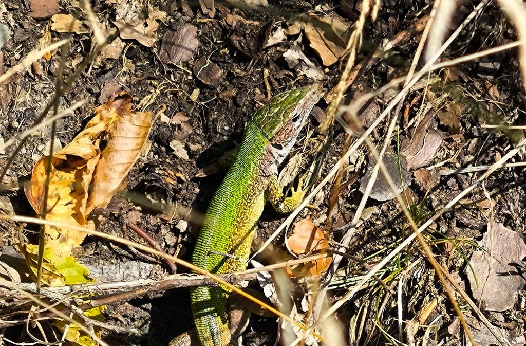Ještěrka zelená je naší největší ještěrkou. Na křivoklátských skalách se s ní můžeme leckde potkat. Ještěrky mají rády prostředí, kde mohou často i během dne měnit svoji pozici na místech kde je teplo a svítí slunce nebo naopak ve stínu a úkrytu před predátory. Ještěrky jsou loveny ptáky, ale i menšími savci, a proto se musí mít stále na pozoru. Nejlépe jsou chráněny tam, kde mají dost úkrytů a zároveň také dost ploch, kde se mohou vyhřívat a lovit hmyz. Proto největší ohrožení pro ještěrky je ztráta vhodného prostředí, například tím, že skály zarostou hustým křovím nebo stromy a slunná místa zmizí. Pak se někdy vydávají ještěrky za sluncem na ohřáté asfaltové povrchy cest a silnic, kde je však přejedou projíždějící vozidla. Nebezpečím jsou i domácí kočičí miláčci na svých toulkách po okolí, pro které je ulovení ještěrky dobrou zábavou. V okolí Žloukovic najdeme ještěrky v přírodní rezervaci Kabečnice.